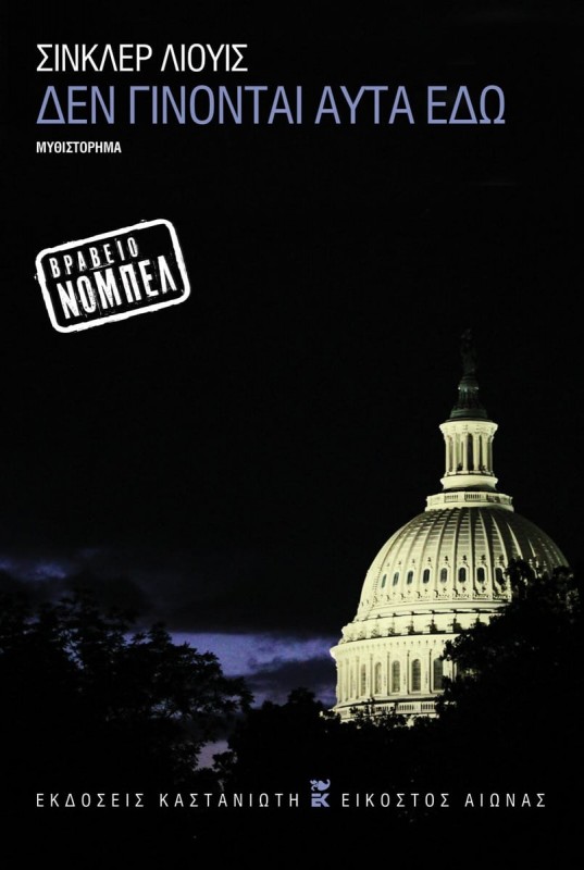 Αυτό το βιβλίο του Σίνκλερ Λιούις είναι μια λογοτεχνική προειδοποίηση για την εύθραυστη φύση της δημοκρατίας. Ο Αμερικανός συγγραφέας περιγράφει πώς ο ολοκληρωτισμός θα μπορούσε να κυριαρχήσει στις Ηνωμένες Πολιτείες. Η ματιά του είναι διαπεραστική και διορατική, ικανή να προκαλέσει την αγωνία και στον σημερινό αναγνώστη. Οι βασικοί πρωταγωνιστές είναι ένας μαχητικός δημοσιογράφος, ο Ντορέμους Τζέσαπ, και ο γερουσιαστής Μπαζ Γουίντριπ, ένας δημαγωγός που καταφέρνει να εγκαθιδρύσει στη γη της ελευθερίας ένα φασιστικό καθεστώς, ένα σύστημα εξουσίας βασισμένο στη βία και την τρομοκρατία. Το μυθιστόρημα Δεν γίνονται αυτά εδώ είναι μια έξοχη πολιτική σάτιρα η οποία μετεξελίσσεται σε μια μεγάλη δυστοπία: ένας εκλεγμένος πρόεδρος μετατρέπεται σε δικτάτορα για να σώσει το έθνος από την απάτη της κοινωνικής πρόνοιας, την εγκληματικότητα, το σεξ και τον φιλελευθερισμό. Το βιβλίο γράφτηκε στη διάρκεια του Μεσοπολέμου, την περίοδο που οι ΗΠΑ βυθίζονταν στην οικονομική ανασφάλεια και στην Ευρώπη αναδυόταν το ναζιστικό σκότος. Ένα έργο φοβερό, ανατριχιαστικά επίκαιρο.