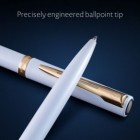 Το λευκό σώμα πλαισιώνεται από λαμπερές επιχρυσωμένες λεπτομέρειες, προσφέροντας κομψή αντίθεση που ενισχύει την επαγγελματική και σύγχρονη αισθητική του. Η ισορροπημένη κατασκευή και ο εργονομικός σχεδιασμός εξασφαλίζουν άνετο κράτημα και σταθερό έλεγχο κατά τη διάρκεια της γραφής.