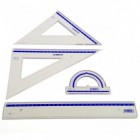Περιλαμβάνει 1 χάρακα, 2 τρίγωνα (ορθογώνιο, ισόπλευρο), 1 μοιρογνωμόνιο.