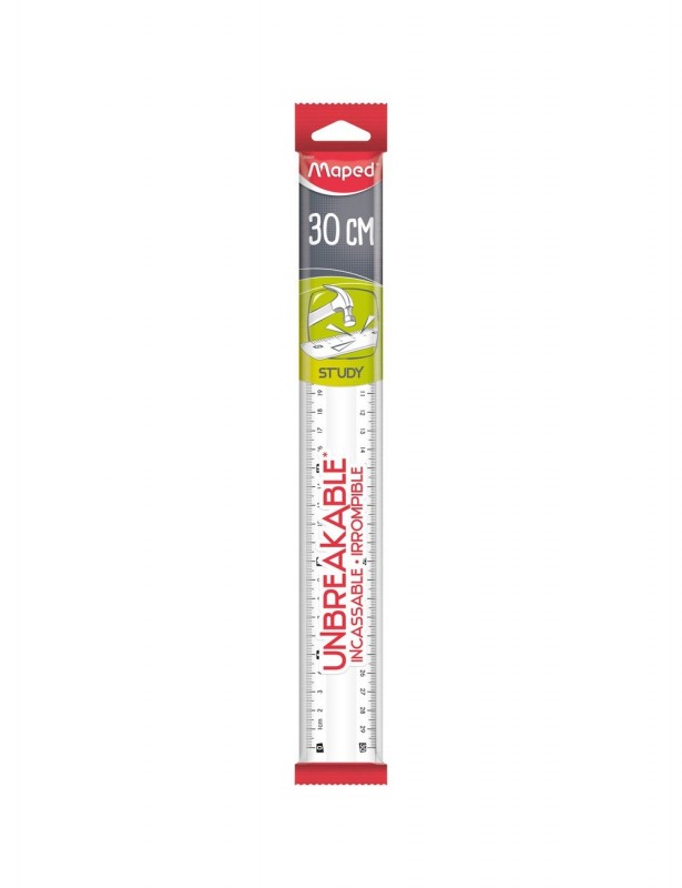 Ο άθραυστος διαφανής χάρακας 30 cm της Maped αποτελείται από ένα μαλακό και ευλύγιστο υλικό που είναι ανθεκτικό σε χτυπήματα.