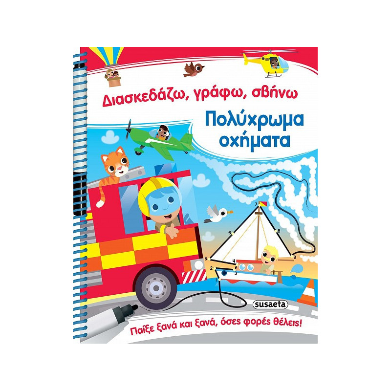 Διασκεδαστικές και… φευγάτες δραστηριότητες παρέα με τα οχήματα! Στο βιβλίο αυτό θα βρεις απίθανους λαβύρινθους, θα ενώσεις τελείες, θα βρεις διαφορές, θα συμπληρώσεις εικόνες… Μην ανησυχήσεις αν κάτι δεν κάνεις σωστά! Το μαρκαδοράκι σβήνει εύκολα για να προσπαθήσεις ξανά και ξανά!