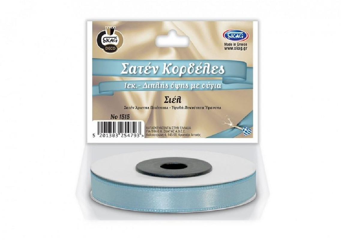 Κορδέλα σατέν 1cm διπλής όψης 15m σιέλ 1515 Skag deco