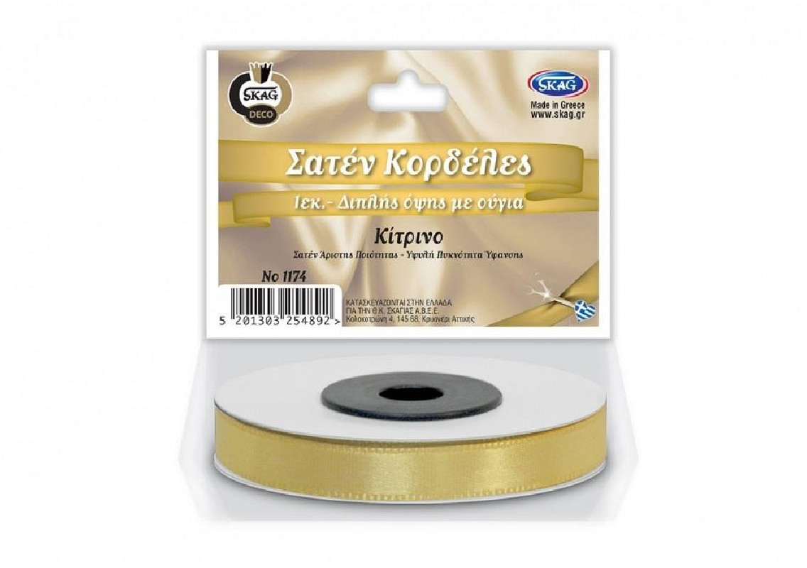 Κορδέλα σατέν 1cm διπλής όψης 15m κίτρινο 1174 Skag deco