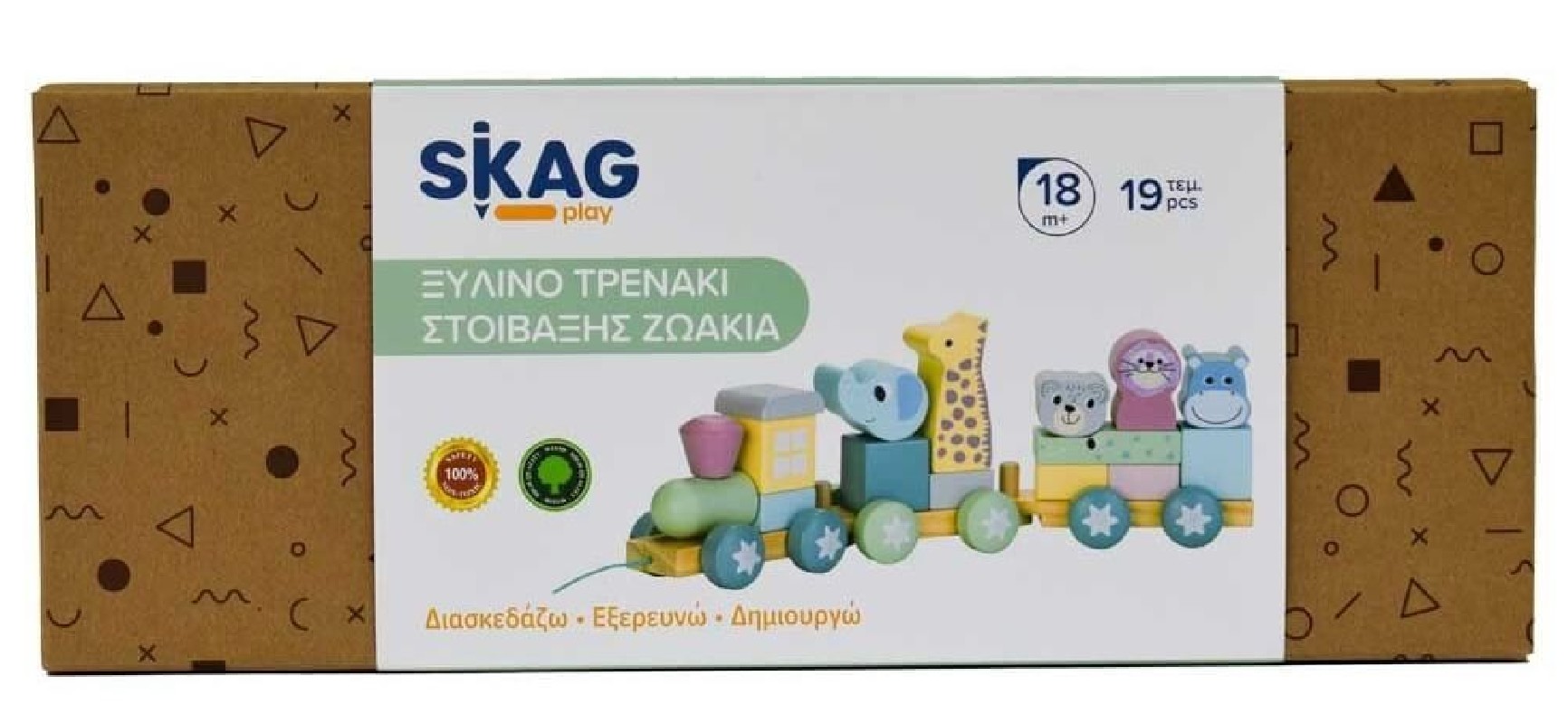 Ξύλινο τρενάκι στοίβαξης ζωάκια 302104 Skag play