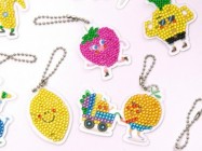 Διασκεδάστε διακοσμώντας 10 μπρελόκ σε σχήμα αστείων φρούτων με μικρά, πολύχρωμα διαμαντάκια. Εύκολα στην κατασκευή, κρεμιούνται παντού και λάμπουν εντυπωσιακά. Αυτό το σετ ενισχύει τη δημιουργικότητα και τη λεπτή κινητικότητα των παιδιών από 5 ετών.