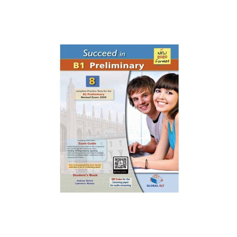8 complete B1 Preliminary (PET) for Schools Practice Tests. The first Practice Test comes with practical and useful Exam Tips. The full colour Exam Guide provides analytical and step-by-step advice on how to tackle each of the exam tasks for all 4 Papers of the exam. QR Codes for each part of the Listening paper. Writing Tutor with Model Writings, Suggested Structure, Useful Vocabulary and Writing Ideas for each of the 24 writing tasks in this book. Speaking Tutor with guidance for every part of all the Speaking tasks in the book. Self-study Edition available, with a Self-study Guide that includes: Detailed and clear explanations for the right and the wrong answers, The Writing and the Speaking Tutors & Audioscripts, Answer Key, MP3 Audio CD. Self-Study Edition (Student\'s Book & Self-Study Guide)