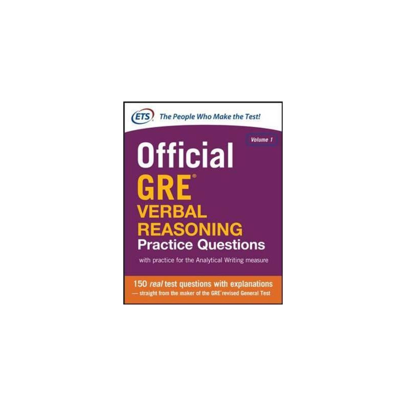 150 REAL GRE Verbal Reasoning questions--direct from the test maker!The best way to prepare for the Verbal Reasoning measure of the GRE revised General Test is with real GRE test questions--and that is what you will find in this unique guide! Specially created for you by ETS, it offers 150 actual GRE Verbal Reasoning questions with complete explanations. Plus, this guide includes an authoritative overview of the GRE Analytical Writing measure, completewith sample writing tasks and scored sample responses. Only ETS can show you exactly what to expect on the test. So for in-depth practice and accurate, reliable test preparation for the GRE Verbal Reasoning measure, this guide is your best choice! Look inside to find: Real GRE Verbal Reasoning test questions arranged by question type and difficulty level--to help you build your test-taking skills. Plus, mixed practice sets.Answers and explanations for every question!ETS\'s own test-taking strategies: Valuable hints and tips that can help you do your best on the test.Official information on the GRE Verbal Reasoning measure: The facts about test content, structure, and scoring--straight from ETS.Plus: An overview of the GRE Analytical Writing measure with writing strategies, sample writing tasks, and sample scored essays.