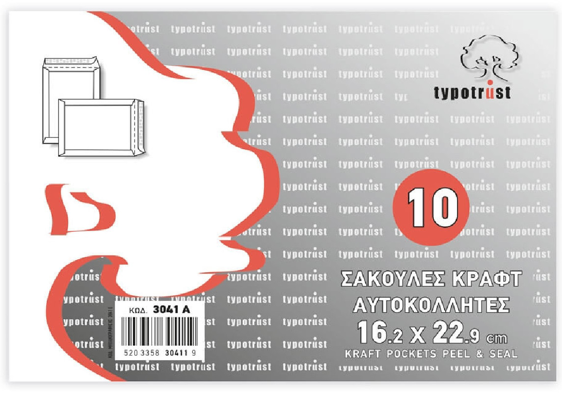 Φάκελοι Κράφτ Σακούλα 16,2x22.9 cm 10 τεμάχια 3041-10 Typotrust