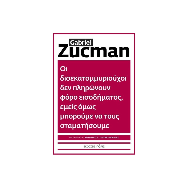 Είναι πια καιρός να αντιμετωπιστεί αυτή η ανωμαλία. Η επιβολή του φόρου 2% για τους υπερπλούσιους, την οποία εισηγείται ο Gabriel Zucman, θα συμβάλει στην καταπολέμηση αυτής της υπέρμετρης ανισότητας. Το παρόν βιβλίο εξηγεί –με μεθοδολογική αυστηρότητα και σαφήνεια– ότι η επιβολή του «φόρου Ζουκμάν», όπως έχει γίνει πλέον γνωστός, αποτελεί επείγουσα ανάγκη.