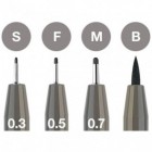 Content: S = 0.3 mm, F = 0.5 mm, M = 0.7 mm, B = brush tip