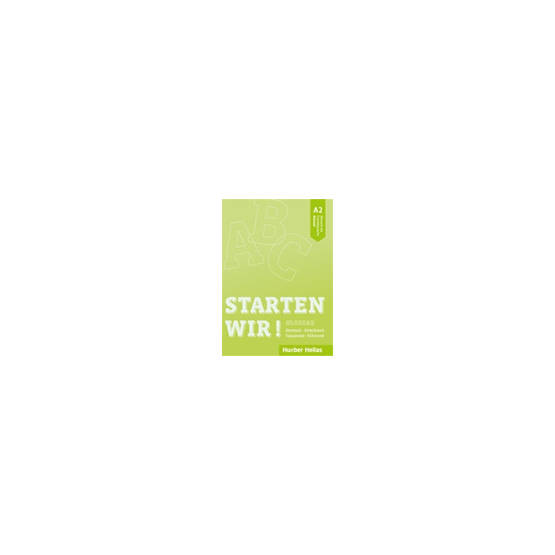 Το Γλωσσάριο αυτό συνοδεύει το STARTEN WIR! A2 και περιέχει το λεξιλόγιο από το Βιβλίο του μαθητή και το Βιβλίο ασκήσεων. Η πρώτη στήλη περιλαμβάνει όλα τα λήμματα με τα απαραίτητα συνοδευτικά στοιχεία, ενώ το βασικό λεξιλόγιο δίνεται με έντονα γράμματα. Η δεύτερη στήλη περιέχει τη μετάφραση των λημμάτων στα ελληνικά με βάση τη σημασία που έχουν στο κείμενο.