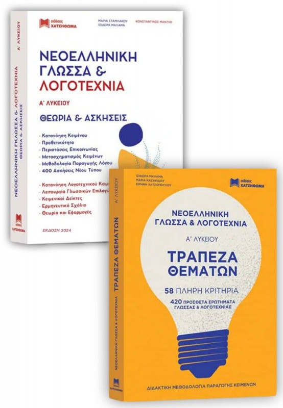 Το βιβλίο Τράπεζα Θεμάτων για τη Α΄ Λυκείου – 58 Κριτήρια αξιολόγησης των εκδόσεων Χατζηθωμά αποτελεί ένα πρακτικό εγχειρίδιο διδασκαλίας και μάθησης, προσαρμοσμένο στον νέο τρόπο εξέτασης του γλωσσικού μαθήματος, σύμφωνα με την τελευταία υπουργική απόφαση (ΦΕΚ 4134/09/09/2021), που προβλέπει την εξέταση των μαθητών μέσω της Τράπεζας Θεμάτων. Στο πρώτο μέρος του βιβλίου παρουσιάζεται οργανωμένα και μεθοδικά η θεωρία και στο δεύτερο μέρος παρατίθενται 58 Κριτήρια αξιολόγησης από την Τράπεζα Θεμάτων, συμπληρωμένα με τα απαιτούμενα αλλά και με πρόσθετα ερωτήματα. Αναλυτικότερα: