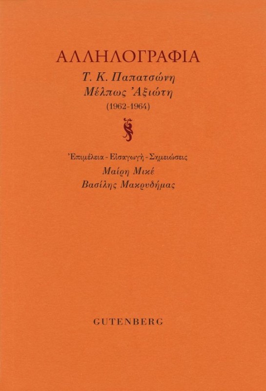 Αλληλογραφία Τ.Κ. Παπατσώνη - Μέλπως Αξιώτη (1962-1964)