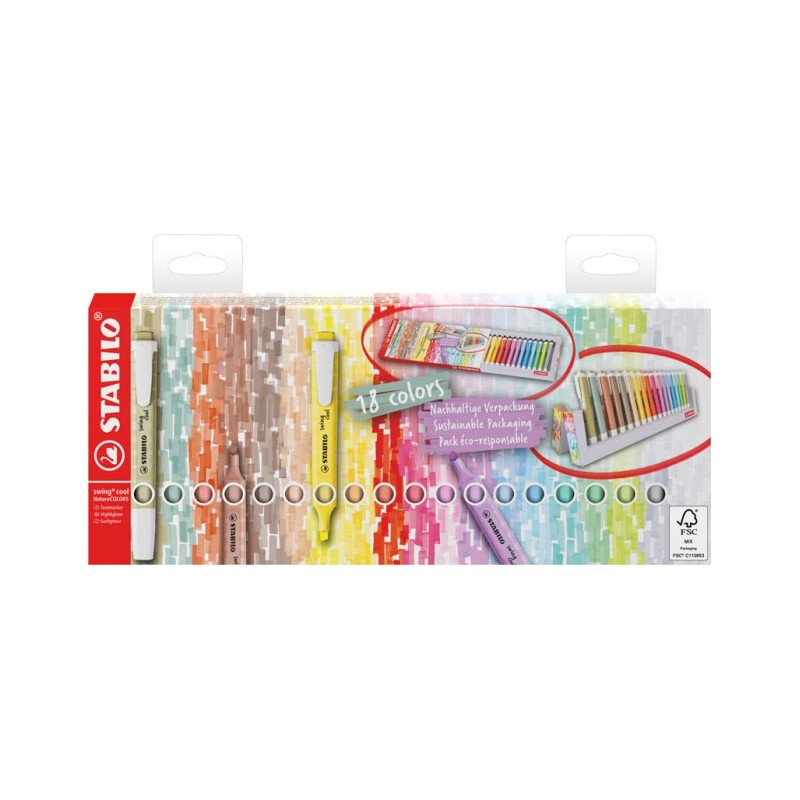Μαρκαδόροι υπογράμμισης Swing Deskset Past+Nature 18τμχ Stabilo