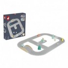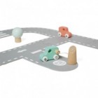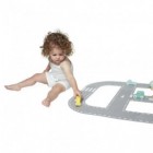 Όλοι στο αυτοκίνητο! Σούπερ σιρκουί, που αποτελείται από 21 κομμάτια: 12 κομμάτια από τσόχα, που σχηματίζουν ένα μεγάλο σιρκουί, και 9 ξύλινα εξαρτήματα – 4 αυτοκινητάκια που περιλαμβάνουν ένα ψεύτικο ηλεκτρικό αυτοκινητάκι, 1 σταθμό φόρτισης, 3 δέντρα και 1 γέφυρα. Το παιδί σας θα μπορεί να φανταστεί ότι κάνει διακοπές οδηγώντας, καθώς μετακινεί τα αυτοκινητάκια του σε αυτό το ελκυστικό σιρκουί. Μπορεί να συγχρονίσει την κυκλοφορία τους με το (ξύλινο) ηλεκτρικό αυτοκινητάκι του που επαναφορτίζεται (στον ψεύτικο σταθμό φόρτισης), με ατέλειωτες δυνατότητες παιχνιδιού. Προάγει τη δεξιοτεχνία του παιδιού σας, ενώ παράλληλα καλλιεργεί τη φαντασία και τη δημιουργικότητά του. Παιχνίδι για τα πρώτα χρόνια του παιδιού, κατασκευασμένο από τσόχα και ξύλο πιστοποιημένα από το Συμβούλιο Διαχείρισης των Δασών (FSCTM).