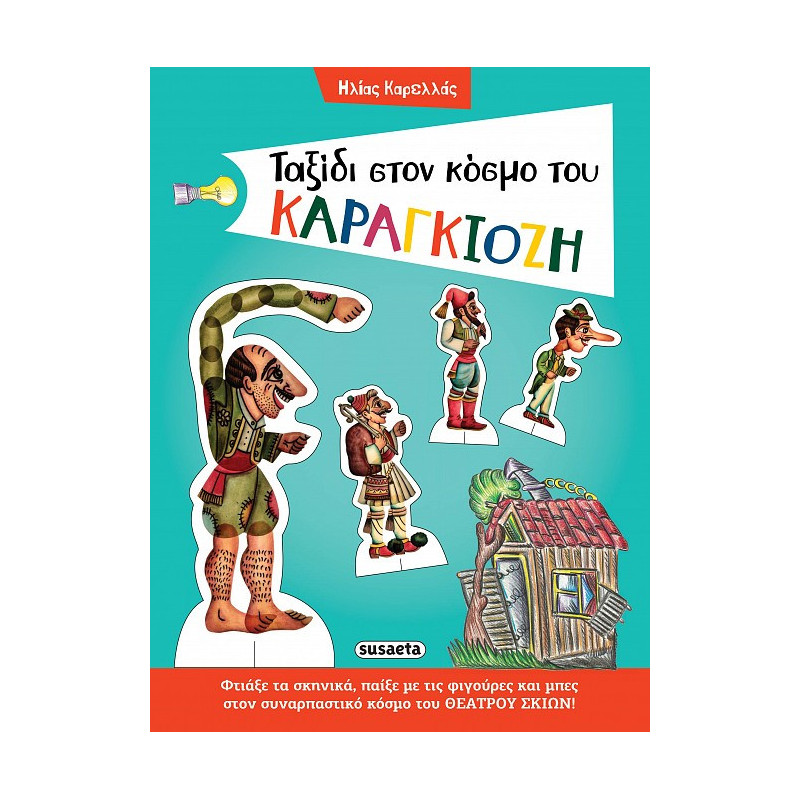 και την εξέλιξη αυτού του είδους θεάτρου; Ο Ηλίας Καρελλάς, ένας από τους σπουδαιότερους σύγχρονους σκιοπαίκτες, αναλαμβάνει να ρίξει φως στις σκιές και να μας ξεναγήσει στον μαγευτικό κόσμο του Καραγκιόζη. Για να παίξεις κι εσύ τις δικές σου παραστάσεις, αφαίρεσε από το βιβλίο τις φιγούρες των ηρώων και τα σκηνικά, στερέωσέ τα στις βάσεις τους και γίνε ένας µικρός καραγκιοζοπαίχτης!