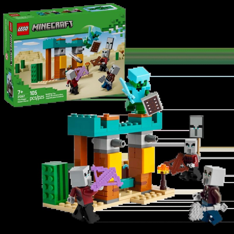 Μεγάλη δράση Minecraft® για μικρούς κατασκευαστές! Το σετ Η Περιπολία των Illager στην Έρημο φέρνει τη μαγεία του δημοφιλούς παιχνιδιού στη ζωή με 4 φιγούρες LEGO® Minecraft, αυθεντικά αξεσουάρ και συναρπαστικά χαρακτηριστικά, προσφέροντας ατέλειωτο παιχνίδι σε παιδιά ηλικίας 7+.
