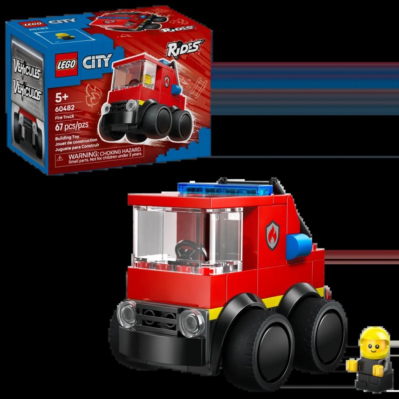 Το LEGO® City Rides – Fire Truck (60482) είναι ένα εύκολο στην κατασκευή σετ για παιδιά 5 ετών και άνω, που φέρνει περιπέτειες πυροσβεστικής. Το σετ περιλαμβάνει μίνι πυροσβεστικό όχημα με ελαστικά λάστιχα και ανεβαστή πυροσβεστική σκάλα, καθώς και μίνι φιγούρα πυροσβέστη.