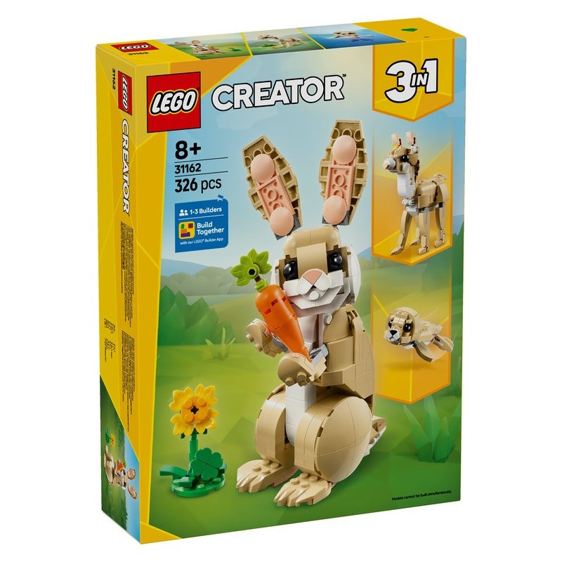 Ετοιμάσου για διασκεδαστικές περιπέτειες με 3 διαφορετικά LEGO® ζώα! Πήγαινε στην εξοχή με το Χαριτωμένο Κουνέλι που μασουλάει ένα ηλιοτρόπιο ή ένα καρότο. Μετά, ανακατασκεύασέ το σε αξιαγάπητο λάμα που περπατάει στο γρασίδι ή σε φώκια με μεγάλα μάτια που κυνηγά ένα ψάρι στα παγωμένα νερά! Και με την εφαρμογή LEGO Builder, μπορείς να διασκεδάσεις κατασκευάζοντας μαζί με φίλους και την οικογένεια.