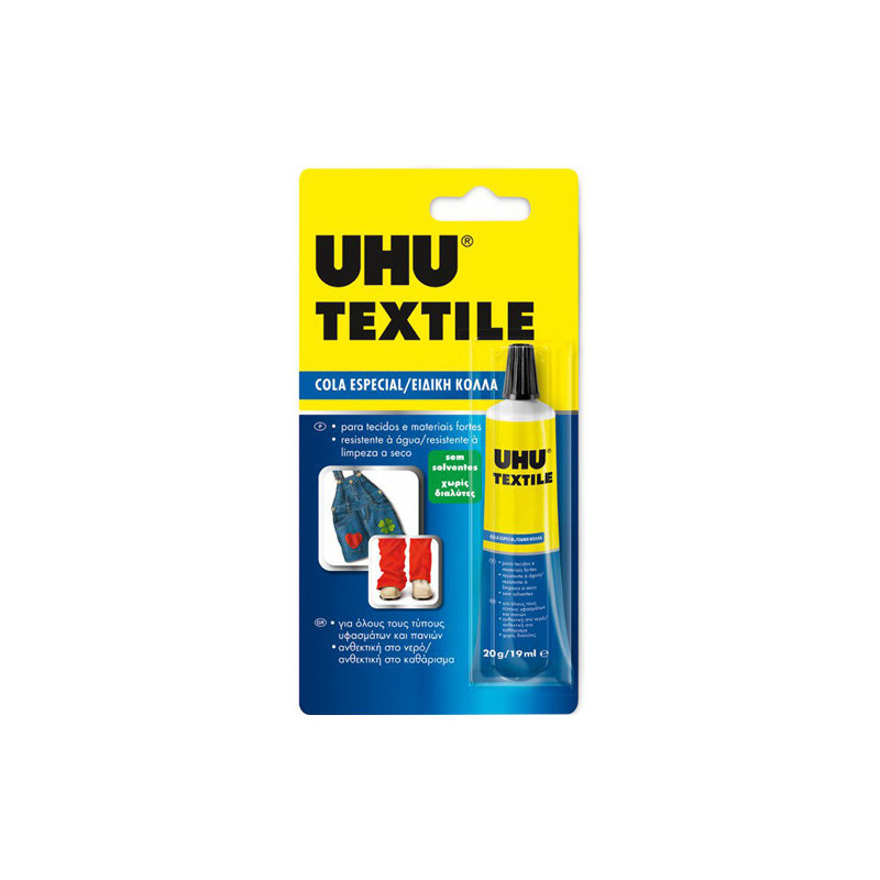 Κόλλα Ρευστή UHU TEXTILE των 19ml. Η ρευστή Κόλλα TEXTILE της UHU είναι μια ειδική κόλλα για όλους τους τύπους υφασμάτων και πανιών.