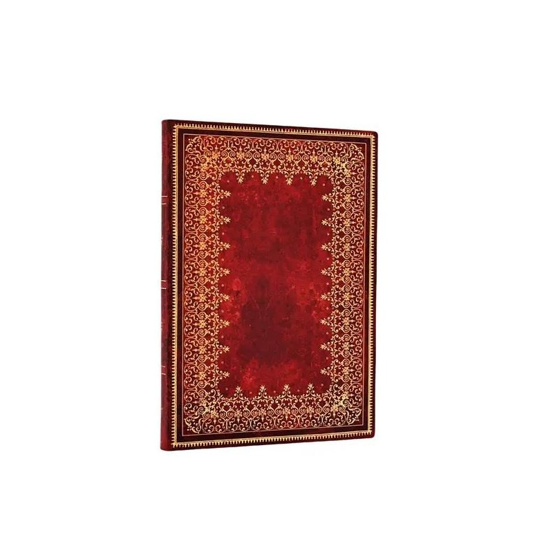 Η διαχρονική ομορφιά ενός παλαιού δερμάτινου βιβλίου μεταφέρεται στο παρόν με αυτό το λεπτοδουλεμένο, δερματίνη-όπως εξώφυλλο. Η τεχνική του gold tooling, χαρακτηριστική της Αναγέννησης, εμπνέει το σχέδιο, με έντονο φυτικό μοτίβο πάνω σε βαθύ κόκκινο φόντο, τιμώντας τις ανατολικές ρίζες της.