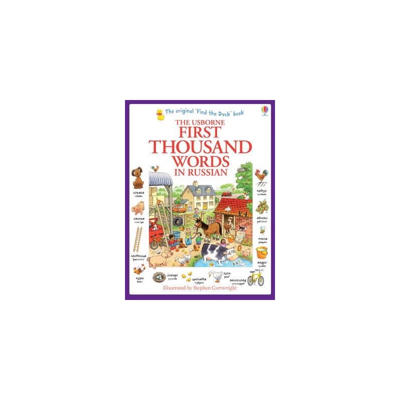 1000 familiar items illustrated in colourful scenes for children to spot, each is labelled with its Russian name for readers to learn. Each word is shown in both Cyrillic script and the Roman alphabet. Readers can listen to every word read by a native Russian speaker at the Usborne Quicklinks Website. Illustrated by Stephen Cartwright, and specially updated to celebrate the 40th anniversary of Usborne Publishing. Don\'t forget to look out for the Little Yellow Duck on every page. A fun way for young Russian learners to learn key vocabulary.