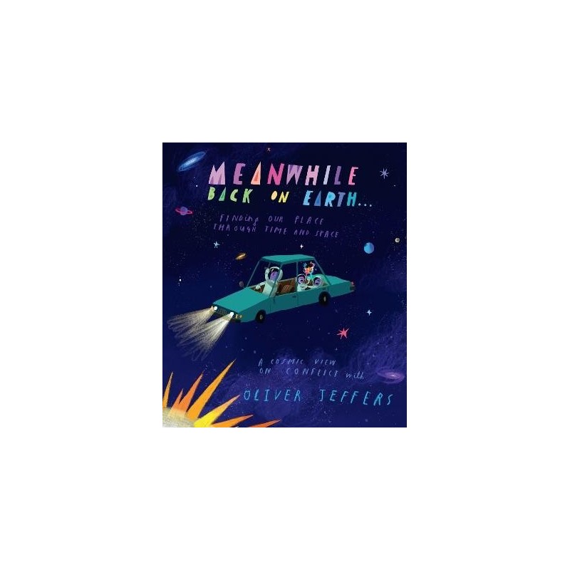 The captivating new companion to international bestsellers Here We Are and What We’ll Build A father takes his two children on a thrilling out-of-this-world adventure into space and invites them to look back at Earth and the conflicts that have taken place since the beginning of time. This becomes a brief history of the world and a whistle-stop guide to the universe, all rolled into one – and told with Oliver Jeffers\'s inimitable perspective, wit and exquisite artwork. Meanwhile Back on Earth gives a unique look at life on Earth with a cosmic perspective – and an enduring message that what binds us together matters more than what sets us apart. A timely story for families everywhere.