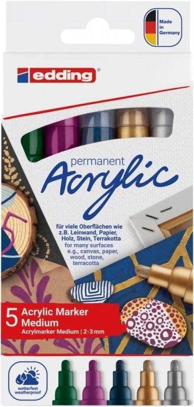 Μαρκαδόροι Ανεξίτηλοι Ακρυλικοί 2-3mm Festive Set 5 Χρωμάτων 5100-999 Edding