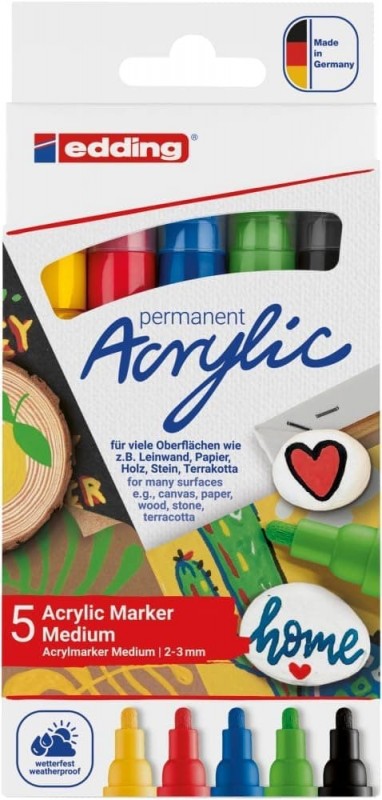 Μαρκαδόροι Ανεξίτηλοι Ακρυλικοί 2-3mm Medium 5 Χρωμάτων 5100-5 Edding