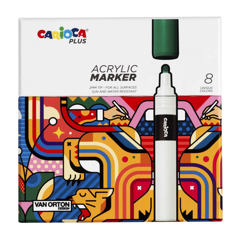 Carioca ακρυλικοί μαρκαδόροι με βάση το νερό, υψηλής ποιότητας με ροή μελανιού για εξαιρετική απόδοση σε διάφορες επιφάνειες. Ιδιαίτερα ανθεκτικοί στο νερό και στους διαλύτες.