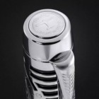 Από την πρώτη ματιά, η παρουσία της είναι αδιαμφισβήτητη: μια δυναμική αντίθεση μαύρου και ασημιού που παραπέμπει στη μεταλλική ομορφιά των κλασικών αεροσκαφών και των ελίκων. Το καπάκι κοσμείται με συμμετρική χάραξη εμπνευσμένη από αεροπορικές πυξίδες. Η αυστηρή γεωμετρία της χάραξης έρχεται σε εκλεπτυσμένη αντίθεση με τη γυαλιστερή μαύρη ρητίνη που φαίνεται στο εσωτερικό, δημιουργώντας μια αισθητική «οργάνου ακριβείας» από τη χρυσή εποχή της πτήσης.