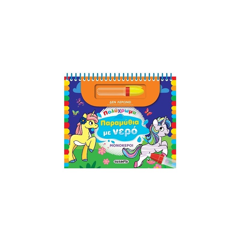 Ανακάλυψε κι εσύ τη μαγική δύναμη του νερού! Γέμισε το πινέλο με νερό και κάνε τους πιο γλυκούς μονόκερους να ζωντανέψουν! Καθώς διαβάζεις την ιστορία του μικρού μονόκερου, «χρωμάτιζε» τις σελίδες με το νεροπινέλο. Ως διά μαγείας θα αποκαλυφθούν τα πιο απίθανα χρώματα! Όταν στεγνώσουν, θα εξαφανιστούν, όμως κάθε φορά που θα περνάς τις σελίδες με το πινέλο, θα ξαναζωντανεύουν! Έτσι η διασκέδαση δεν τελειώνει ποτέ!