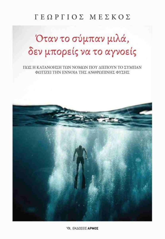 Οι σύγχρονες προσεγγίσεις της ανθρώπινης φύσης έχουν φαινομενολογικό χαρακτήρα, ενώ η παραδοσιακή αντίληψη έχει οντολογικό χαρακτήρα. Δηλαδή εφαρμόζει στον άνθρωπο τον τρόπο με τον οποίο ο Μεσαίωνας κατανοούσε τη δόμηση του φυσικού κόσμου. Στο βιβλίο αυτό ακολουθούμε την παραδοσιακή πρακτική και εξετάζουμε ποιες πληροφορίες για την ανθρώπινη φύση προσφέρει η επιστημονική γνώση σχετικά με τη δόμηση του Σύμπαντος. Φτάνουμε στα μη αναγώγιμα στοιχεία της σύγχρονης επιστημονικής περιγραφής του φυσικού κόσμου, παρακάμπτοντας τα αναπάντητα ζητήματα. Στη συνέχεια, αναζητούμε τι μπορεί να μας προσφέρει αυτή η μερική γνώση για το Σύμπαν στην κατανόηση του ανθρώπου και της φύσης του... Όλα αυτά οδηγούν σε καινοτόμα συμπεράσματα, άλλοτε εύπεπτα και άλλοτε δύσπεπτα, όσον αφορά την προσωπική ζωή, την πίστη, την παιδεία, την πολιτική και τη σχέση μας με το περιβάλλον. Όταν όμως το Σύμπαν μάς μιλά, δεν μπορούμε να το αγνοούμε...