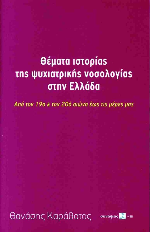 Με το νέο µου βιβλίο επιχειρώ να παρουσιάσω Θέµατα ιστορίας της ψυχιατρικής νοσολογίας στην Ελλάδα, εκθέτοντας όσα προκαταρκτικά για τις ευρωπαϊκές απαρχές πρόσφερε ο ευρωπαϊκός 18ος αιώνας και ανέδειξαν κατόπιν ο 19ος και ο 20ός. Με την επιλογή της διάταξης των 22 κειµένων, αυτά συγκροτούν την ιστορική διαδροµή των νευροψυχιατρικών νοσολογικών εννοιών, όπως αυτές παράγονταν στην Ευρώπη και µετακενώνονταν στην Ελλάδα, όπου ακολουθούσαν τη δική τους πορεία. Ανάστροφη η δική µου, ένα ταξίδι στα χνάρια αυτής της διαδροµής, αναζητώντας τα «δεδοµένα» πάνω στα οποία στήθηκε και αναπτύχθηκε η ψυχιατρική στην Ελλάδα.
