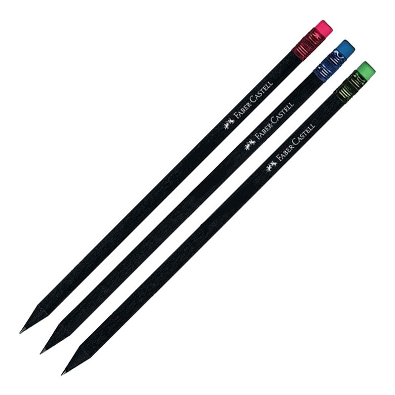 Μολύβι μαύρο με την εξαιρετική ποιότητα της Faber Castell με γόμα σε 3 χρώματα.