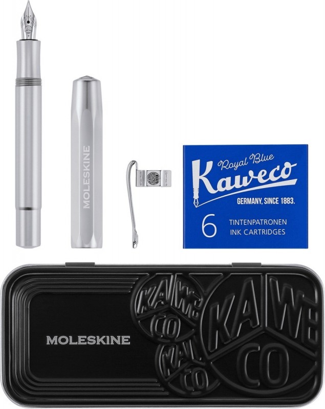 Kaweco Moleskine Aluminium Silver fountain pen with free clip and blue cartridges
