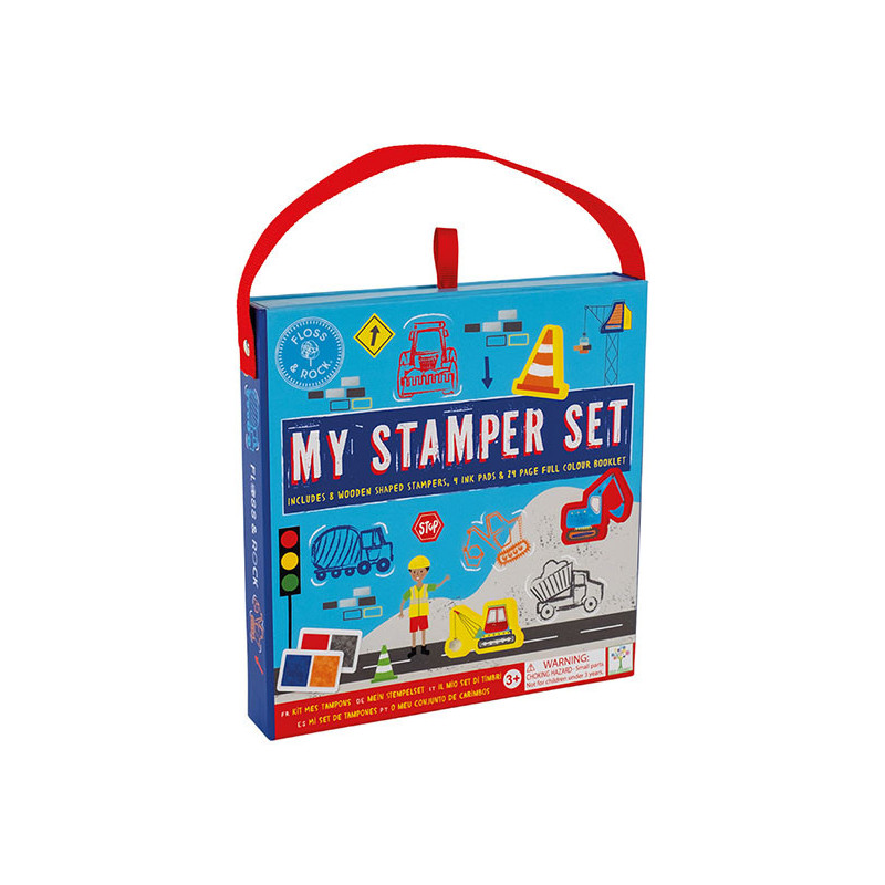 Το σετ με σφραγίδες διαθέτει πολλά οχήματα, όπως εκσκαφέα, φορτηγά, γερανοί και κώνοι κυκλοφορίας. Ανοίξτε το φυλλάδιο 24 σελίδων για να βρείτε διασκεδαστικές σκηνές με τα οχήματα και, στη συνέχεια, γίνετε δημιουργικοί χρησιμοποιώντας τα stampers και τα επιθέματα μελάνης που παρέχονται για να διακοσμήσετε τις σκηνές και να δημιουργήσετε διασκεδαστικές ιστορίες και σενάρια με πολύχρωμα stampers.
