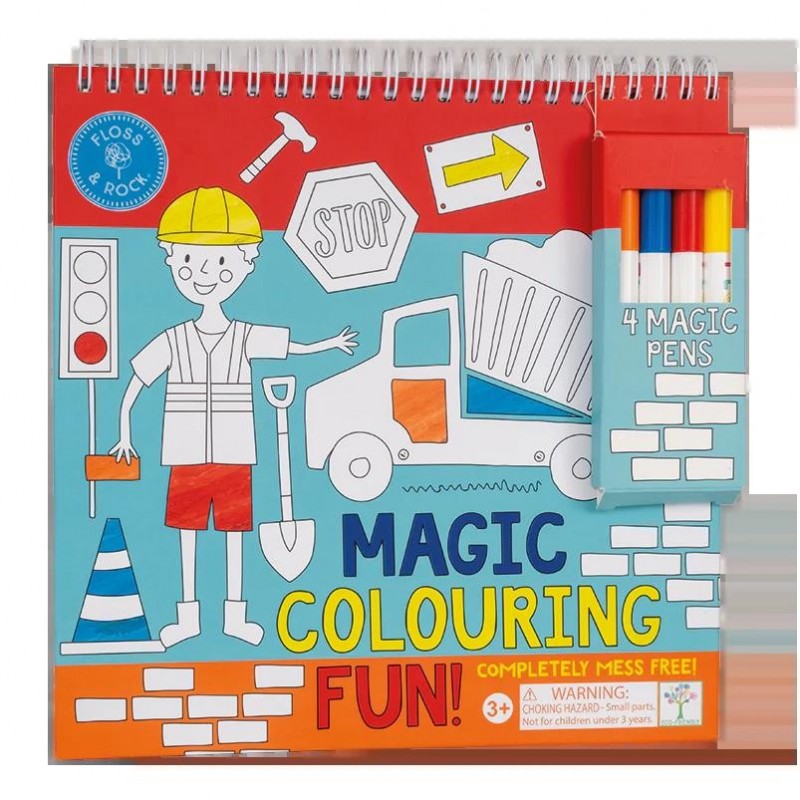 Say goodbye to mucky fingers and mess… Our magic colouring-in pens have invisible ink which only appears on our super fun pages! Choose a colour and watch it magically emerge on the page. Each spiral bound pad contains 4 magic pens and 8 colouring pages, this Construction design has diggers, builders, cranes, cones and more.