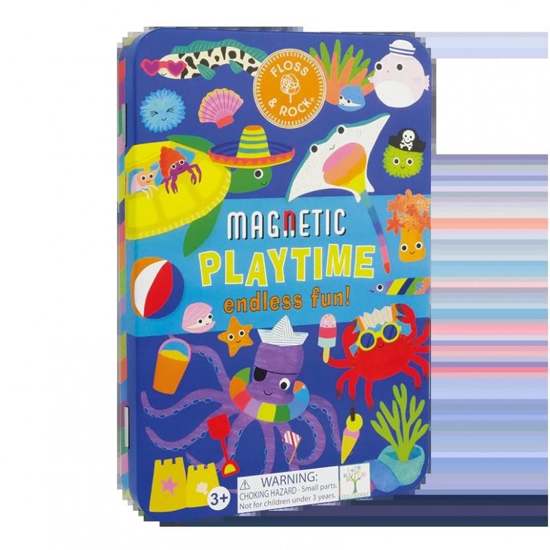 Playtime fun in a handy magnetic tin! Contains 3 sheets of pop out magnets so you can have fun sticking over 50 bright, fun magnetic pieces to the 2 fun scenes on the inside of your tin and let your imagination run wild creating fabulous pictures with cool crabs, taxi-ing turtles and much more. A perfect pick up gift, printed with soy inks and made using recycled materials. When you\'re finished playing, the magnetic tin safely stores all your pieces ready for next time.