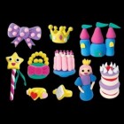Become a master sculptor and creative genius with Clay & Play! Use the 6 pots of easy-to-sculpt, super soft air-dry clay and the double-sided instruction cards to make 10 Princess-themed characters and accessories.
