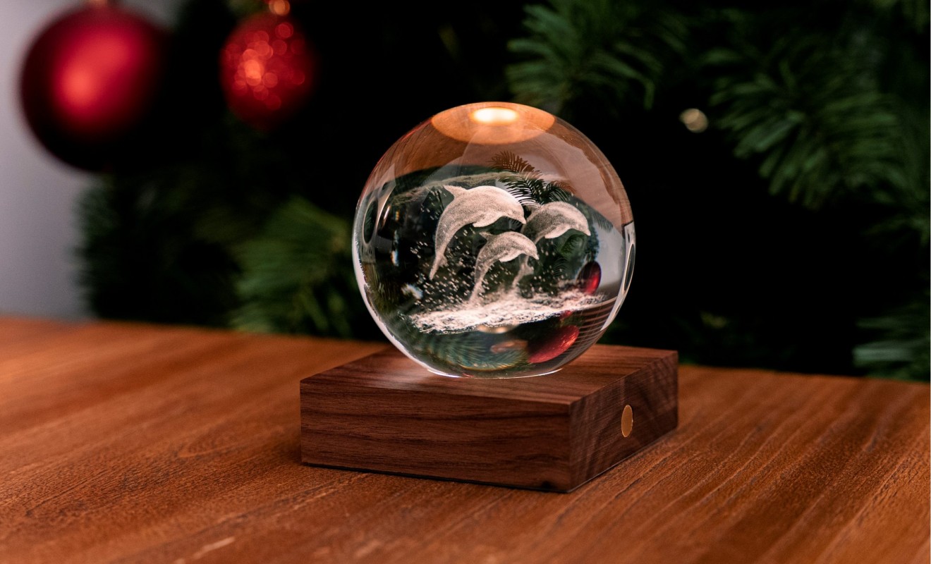 Gingko Amber Crystal Light 3D Laser Jumping Dolphins G025DO