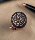Στην κορυφή του καπακιού βρίσκεται νόμισμα σε ροζ χρυσό 18KT που απεικονίζει τον Ιπποκράτη, ενώ ο κλιπ φέρει τη διάσημη ράβδο του Ασκληπιού, επίσης σε ροζ χρυσό 18KT.