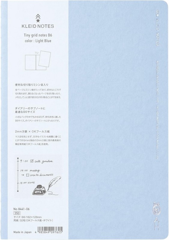 kleid 8441-06 Notebook, 2 mm Grid, B6 182x128mm Square Light blue, 64 white pages,