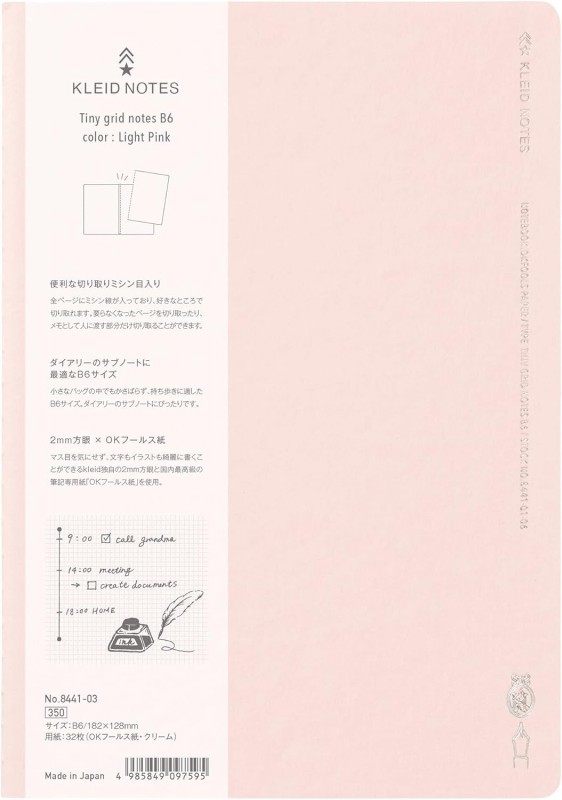 kleid 8441-03 Notebook, 2 mm Grid, B6 182x128mm Square Light pink, 64 white pages,