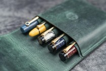 Galen Leather Flap Pen Case for Five Pens - Crazy Horse Forest Green