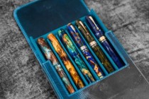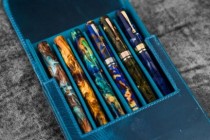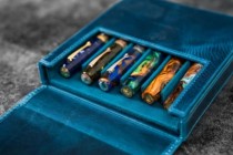 Galen Leather Magnum Opus 6 Slots Hard Pen Case with Removable Pen Tray - Ocean Blue