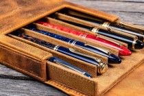Galen Leather Magnum Opus 6 Slots Hard Pen Case with Removable Pen Tray - Crazy Horse Brown