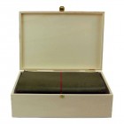 Ιδιαίτερης κατασκευής ξύλινο κουτί που κλείνει με μεταλλικό κούμπωμα και περιέχει δερμάτινο σημειωματάριο μαζί με όλα τα απαραίτητα ανταλλακτικά του