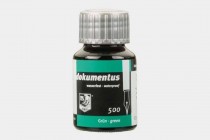 Rohrer & Klingner Dokumentus ink is the world\'s first waterproof fountain pen ink confirming to the resistance requirements of DIN ISO 12757-2.