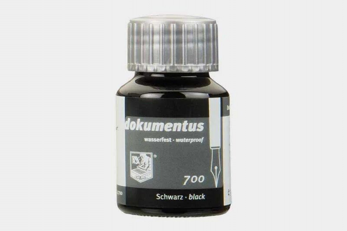 Rohrer & Klingner Dokumentus ink is the world\'s first waterproof fountain pen ink confirming to the resistance requirements of DIN ISO 12757-2.